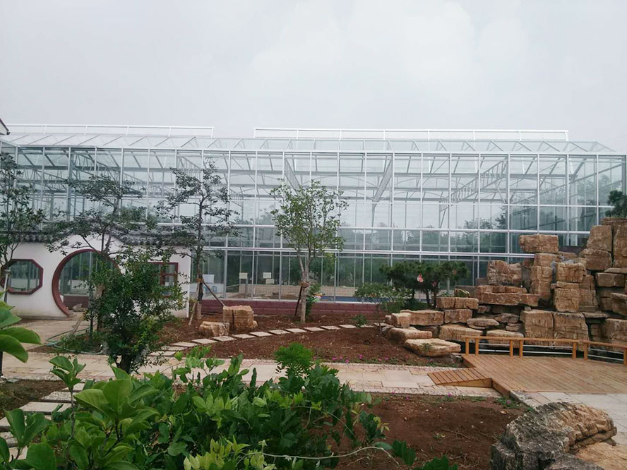 我們承建的生態(tài)餐廳,克服了種植溫室易結(jié)露,視野小的弊端,以大空間,舒適、環(huán)保為理念,設(shè)計(jì)開發(fā)了高屋脊、大跨度、大空間的用類型,覆蓋材料采用玻璃或PC板,外形造型美觀,恢弘大氣,內(nèi)部視野開闊,寬敞明亮。置身與其中,既能感受田園的韻味,又能享受美味佳肴。