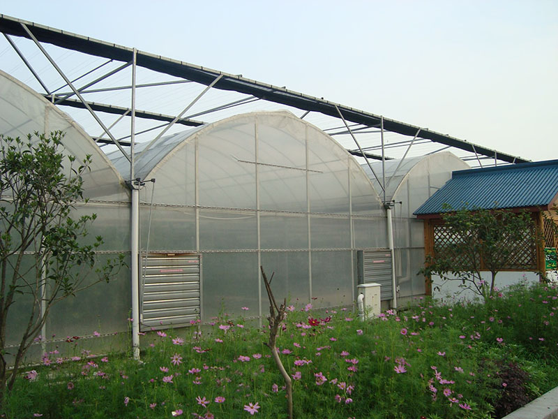 連棟溫室是溫室的一種升級存在,其實就是一種大溫室, 把原有的單間溫室,用科學的手段、合理的設計、好的材料將原有的獨立單間模式溫室連起來。連棟溫室是一種經濟型溫室,它以優美的弧線形和造價低倍受用戶歡迎?;⌒问翼斆烙^大方,視線流暢。結構用鋼量小,保溫性能好。制造成本相對較低,屬經濟型溫室,適用于我國大部分地區。北方地區多采用雙層膜溫室,南方地區多選用單膜溫室。能在可見光0.4-0.7微米范圍內得到大光照,層膜充氣后,可以形成厚厚的氣囊,能有效地防止熱量流失和阻止冷空氣的侵入,采用雙層充氣膜后可大大提高溫室保溫性能,節省運行成本。覆蓋材料頂部為聚乙烯無滴長壽膜覆蓋,外層防紫外線,內層防集露;四周可以根據用戶需要采用聚乙烯無滴長壽膜或聚碳酸酯中空板覆蓋。